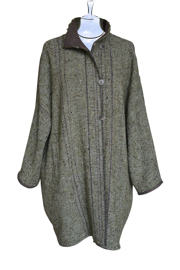 Knielanger Wollkimono-Mantel Carmela aus handgesponnener Schafwolle