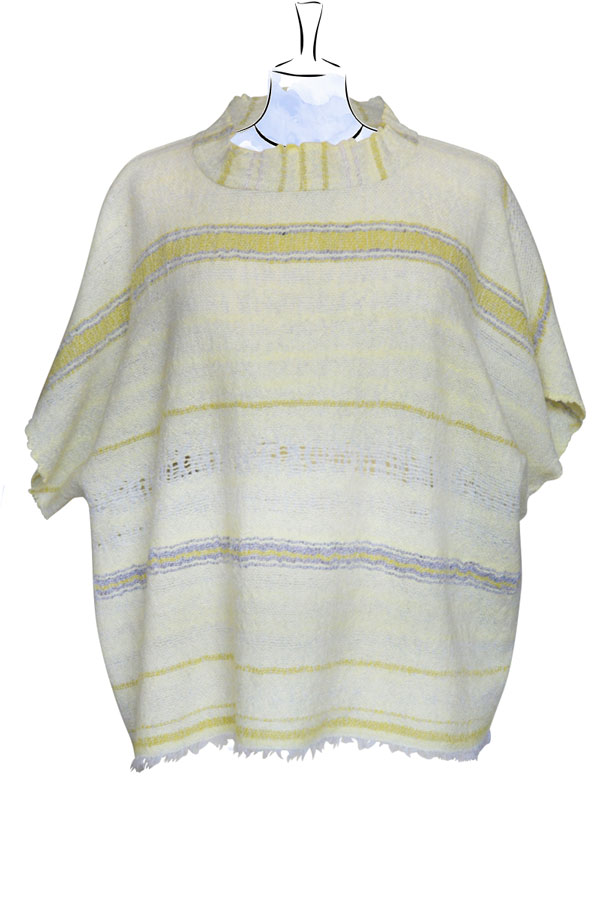 Leichte, weit geschnittene Fledermausweste Tanja aus reiner weicher Wolle mit kurzen Arm und V-Ausschnitt.